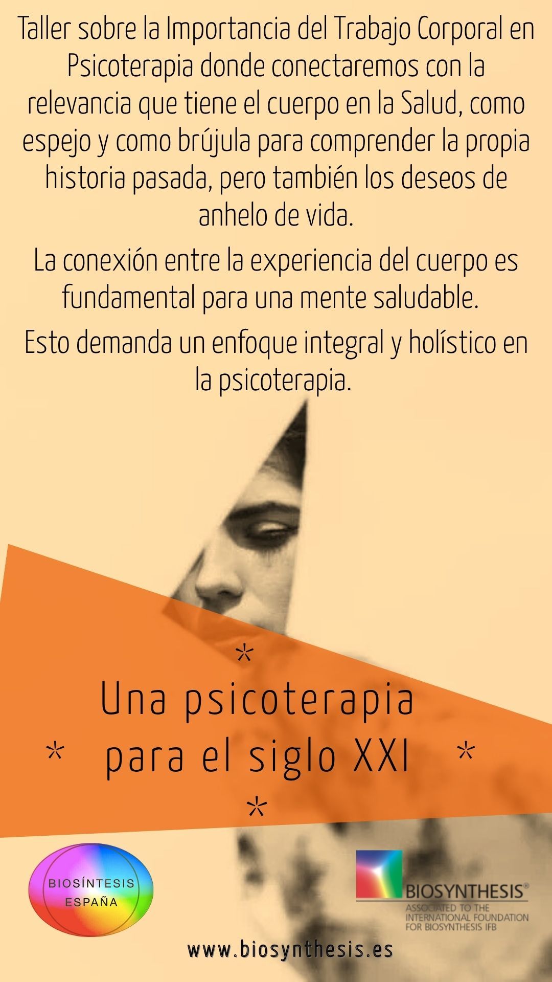 El cuerpo y la mente son dos sistemas interdependientes, los dos se afectan mutua y profundamente. La huella de la vida queda reflejada en ambas. En este taller hablaremos sobre la Importancia del Trabajo Corporal en Psicoterapia donde conectaremos con la relevancia que tiene el cuerpo en la Salud, como espejo y como brújula para comprender la propia historia pasada, pero también los deseos de anhelo de vida.